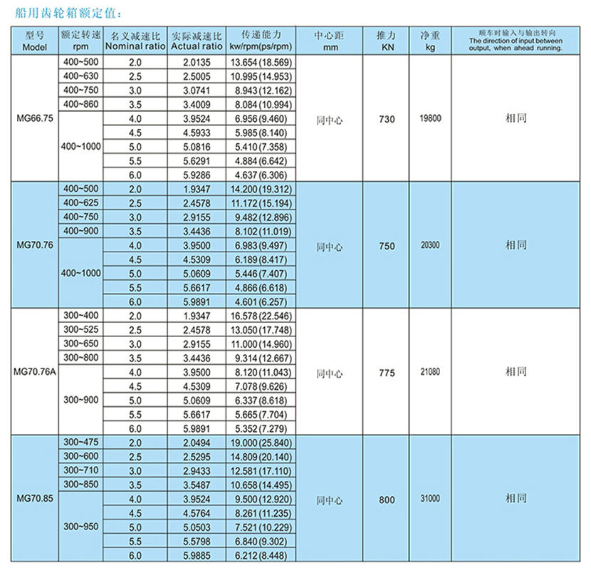 | MG系列大功率船用齒輪箱 | |||