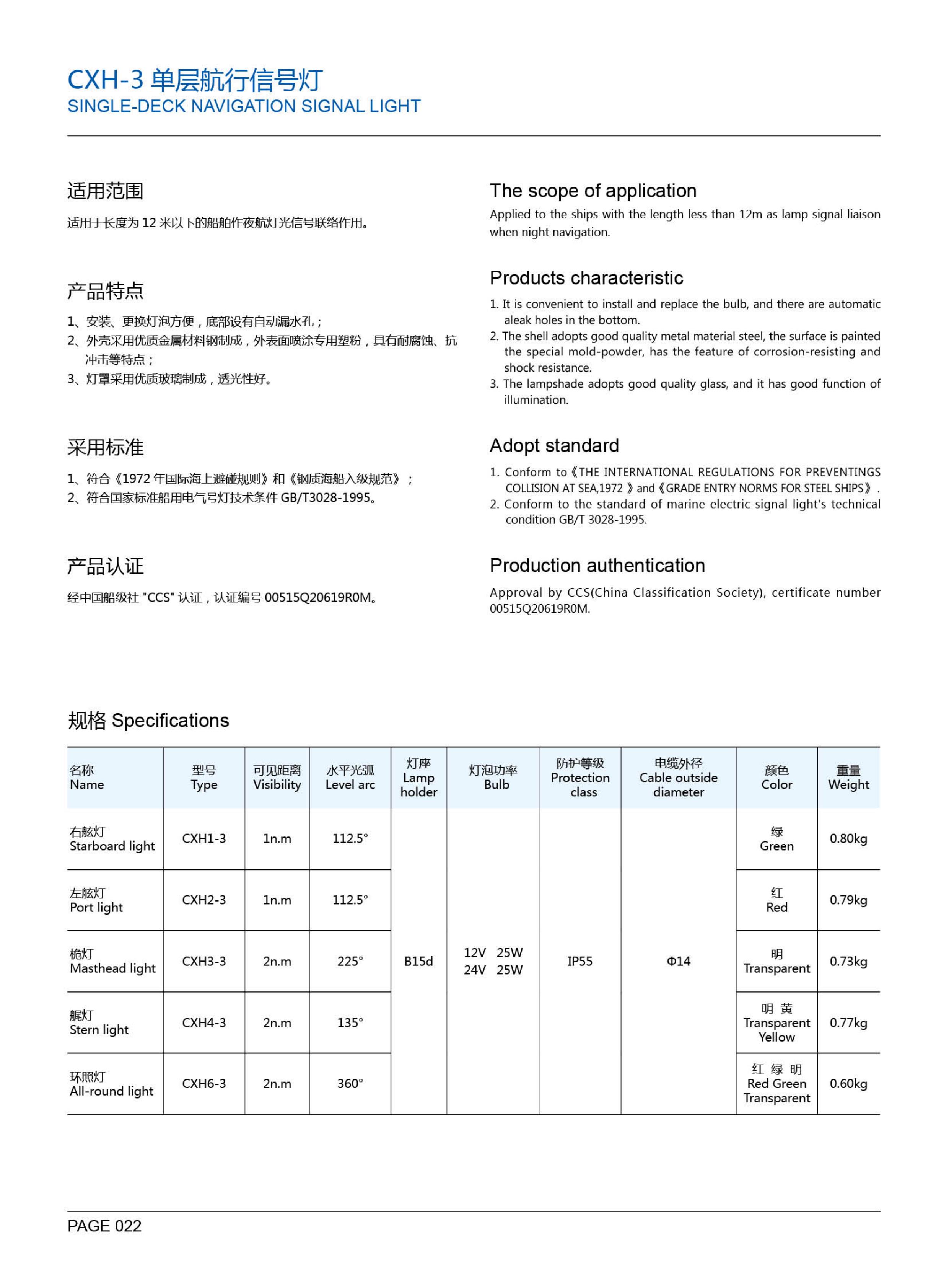 | 單層航行信號燈右舷燈 | |||