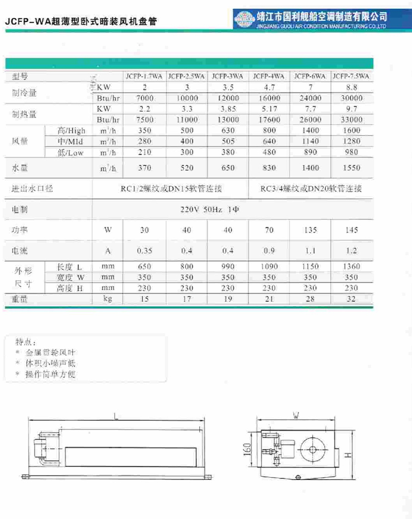 | JCFP系列艦船用超薄型臥式暗裝風機盤管 | |||
