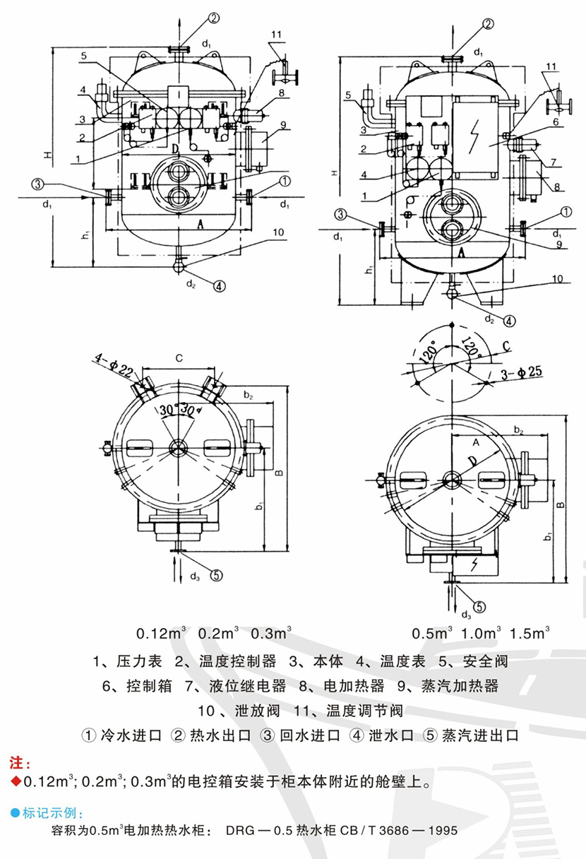 | 船用電蒸汽加熱熱水柜 | |||