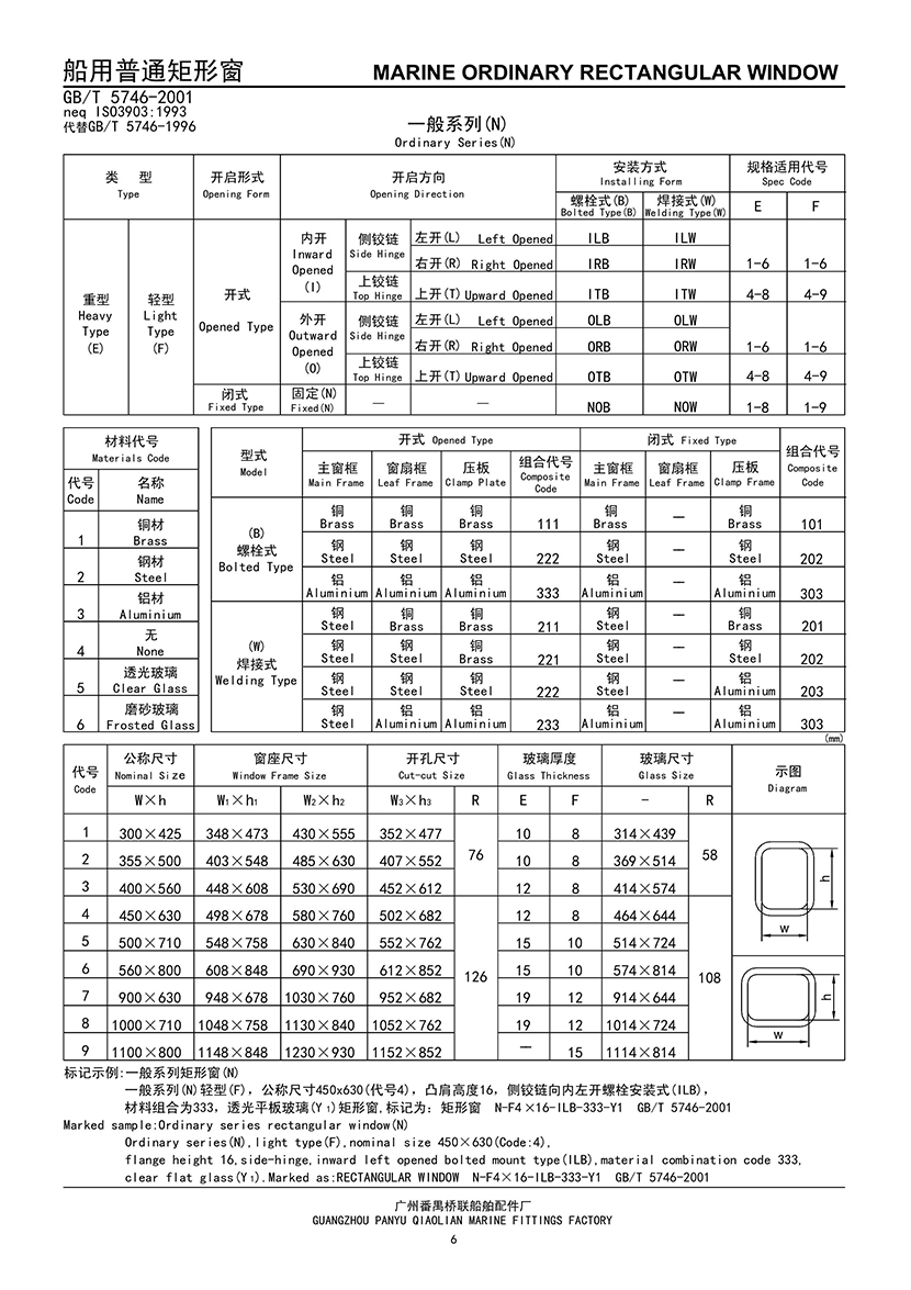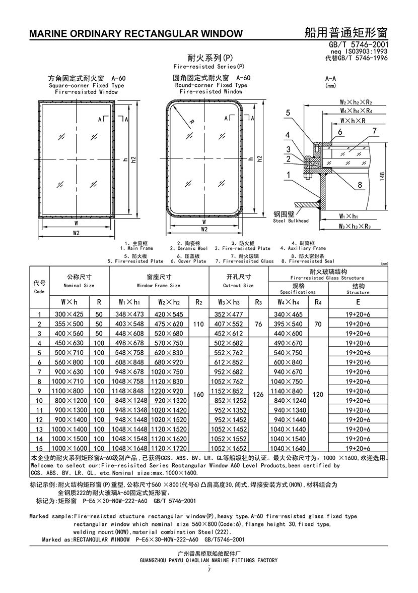 | 船用方角固定式耐火窗 | |||