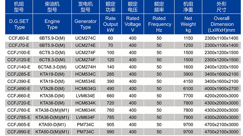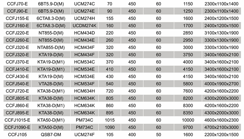 | 柴油機型號: | KTA19-D(M) | 發電機型號: | HCM534E |