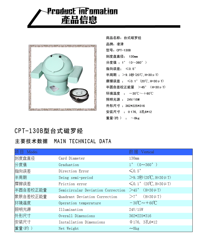 | 主半圓自差校正能量: | >45° | 象限自差校正能量: | >7° |
