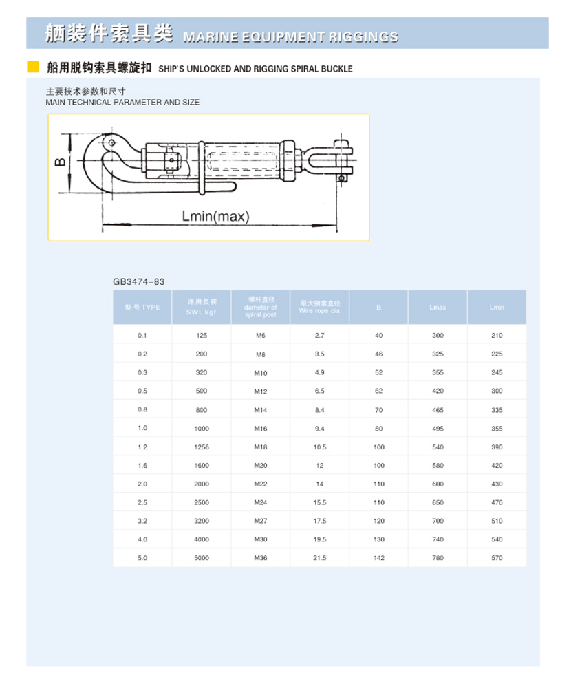 | 類型: | 船用脫鉤索具螺旋扣 | ||