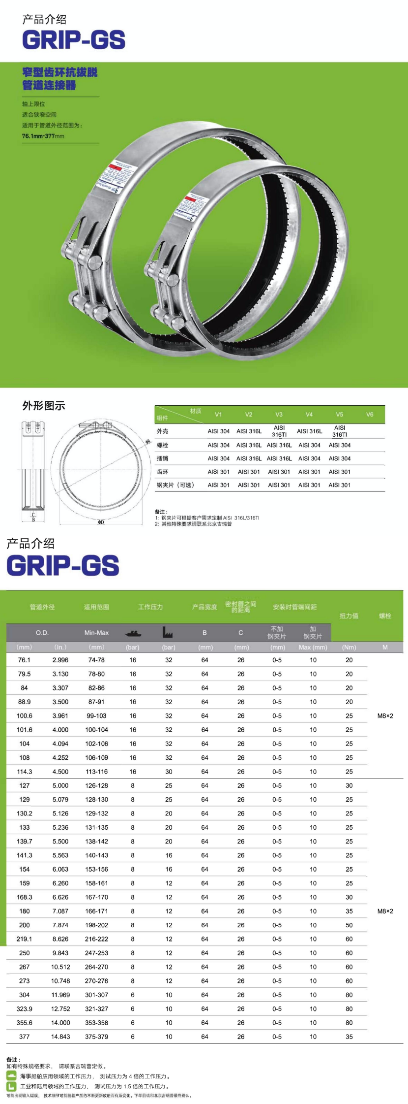 管道外徑: 104mm 適用范圍: 102~106mm