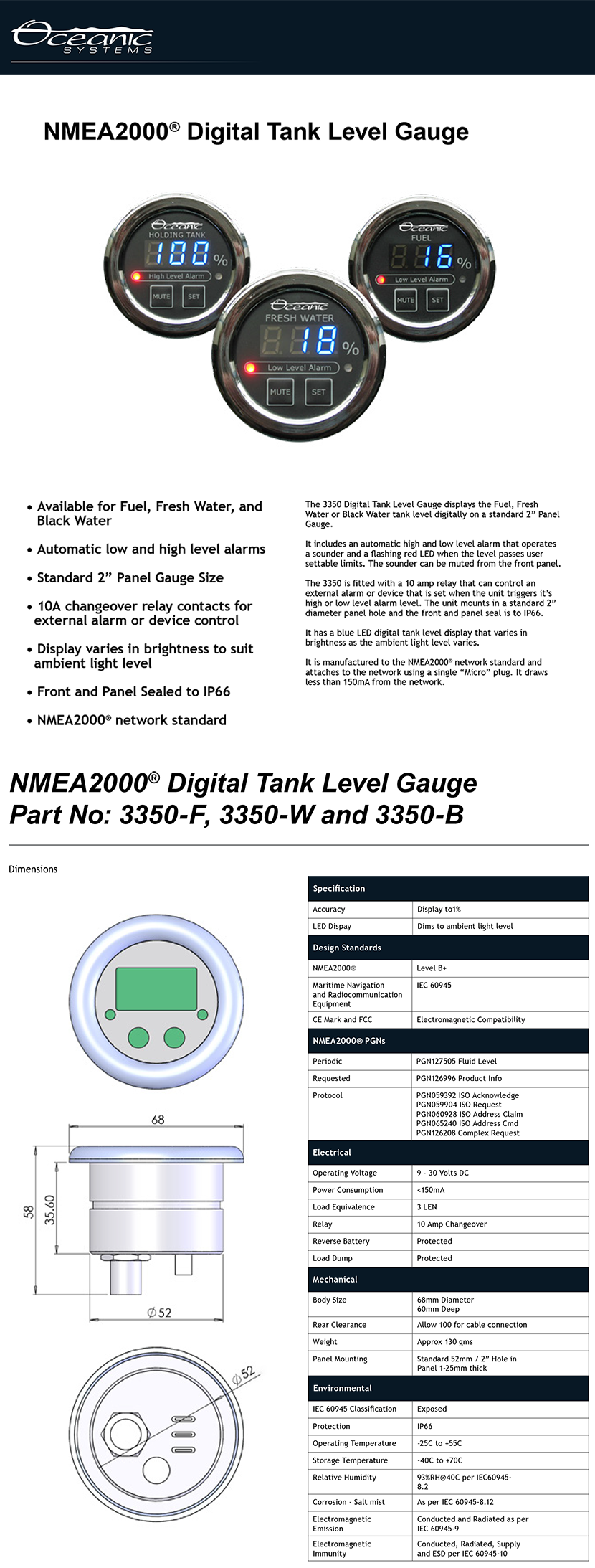 | 數(shù)據(jù)傳輸媒介: | NMEA2000?網(wǎng)絡(luò) | 工作溫度: | -25~55°C |