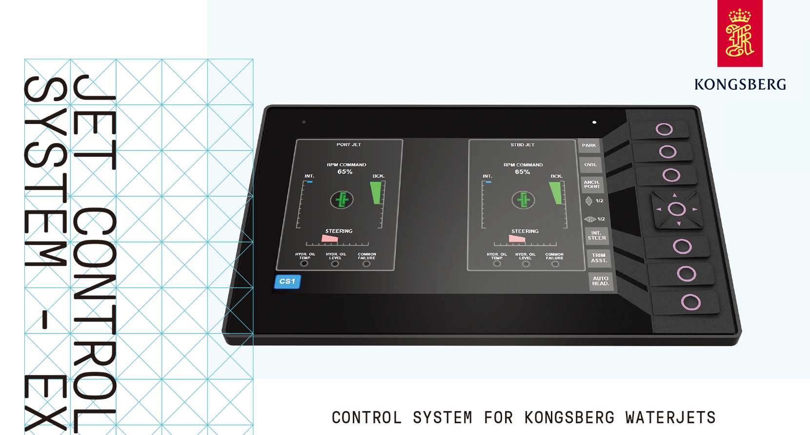 | 適用推進類型: | Kamewa Aluminum andSteel series, small to mid sizes | 供貨范圍: | ·Bridge devices, lever height 110mm, dept 65mm, steering wheel 320 mm ·Main components located with thewaterjet and at the bridge |
